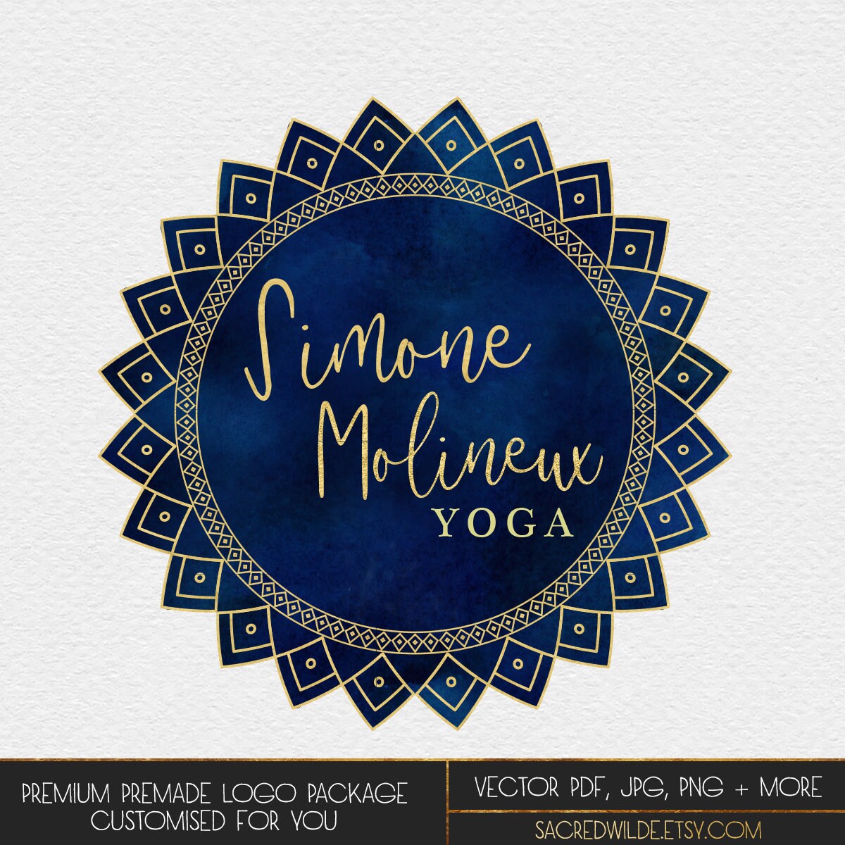 Gold Yoga Logo Lotus Logo Watermark Mandala Logo Custom Etsy