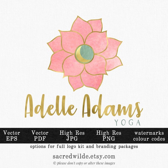 Yoga Logo Lotus Flower Logo Custom Business Logo Instant Etsy