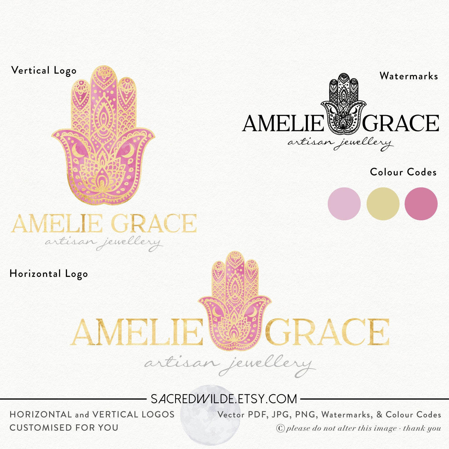 Pink Hamsa Branding Package Hamsa Logo Hand Of God Logo Etsy