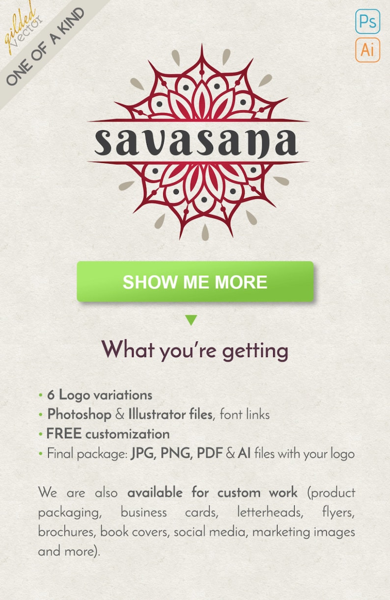 Yoga Logo Mandala Logo Design Custom Logo Business Logo Etsy