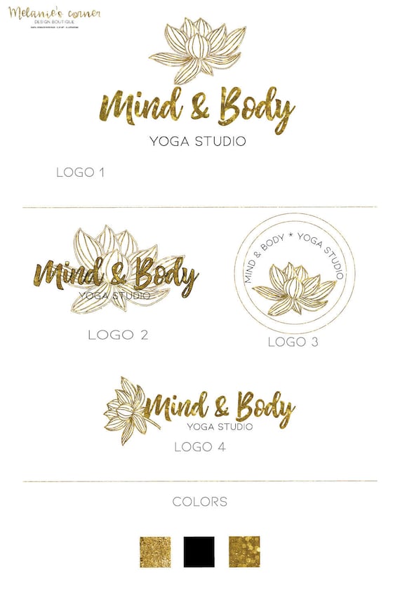 Yoga Logo Gold Yoga Logo Lotus Logo Etsy