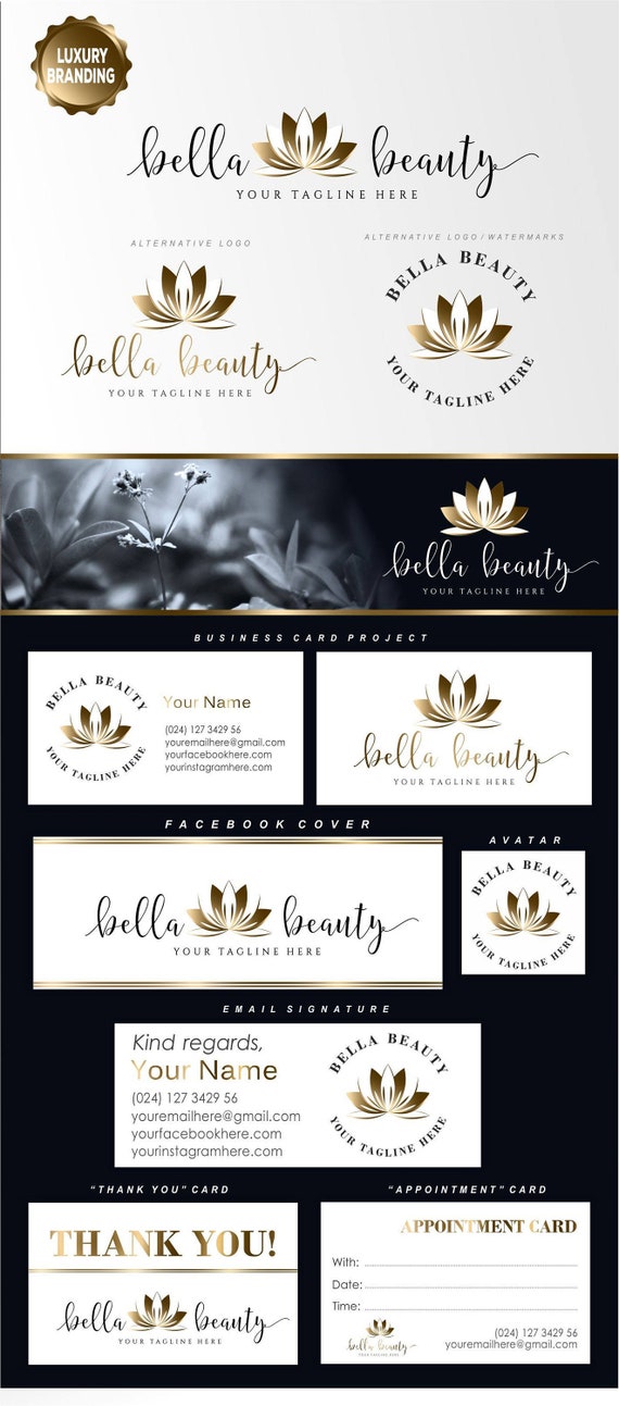 Golden Lotus Premade Logo Design Web Print Watermark Etsy