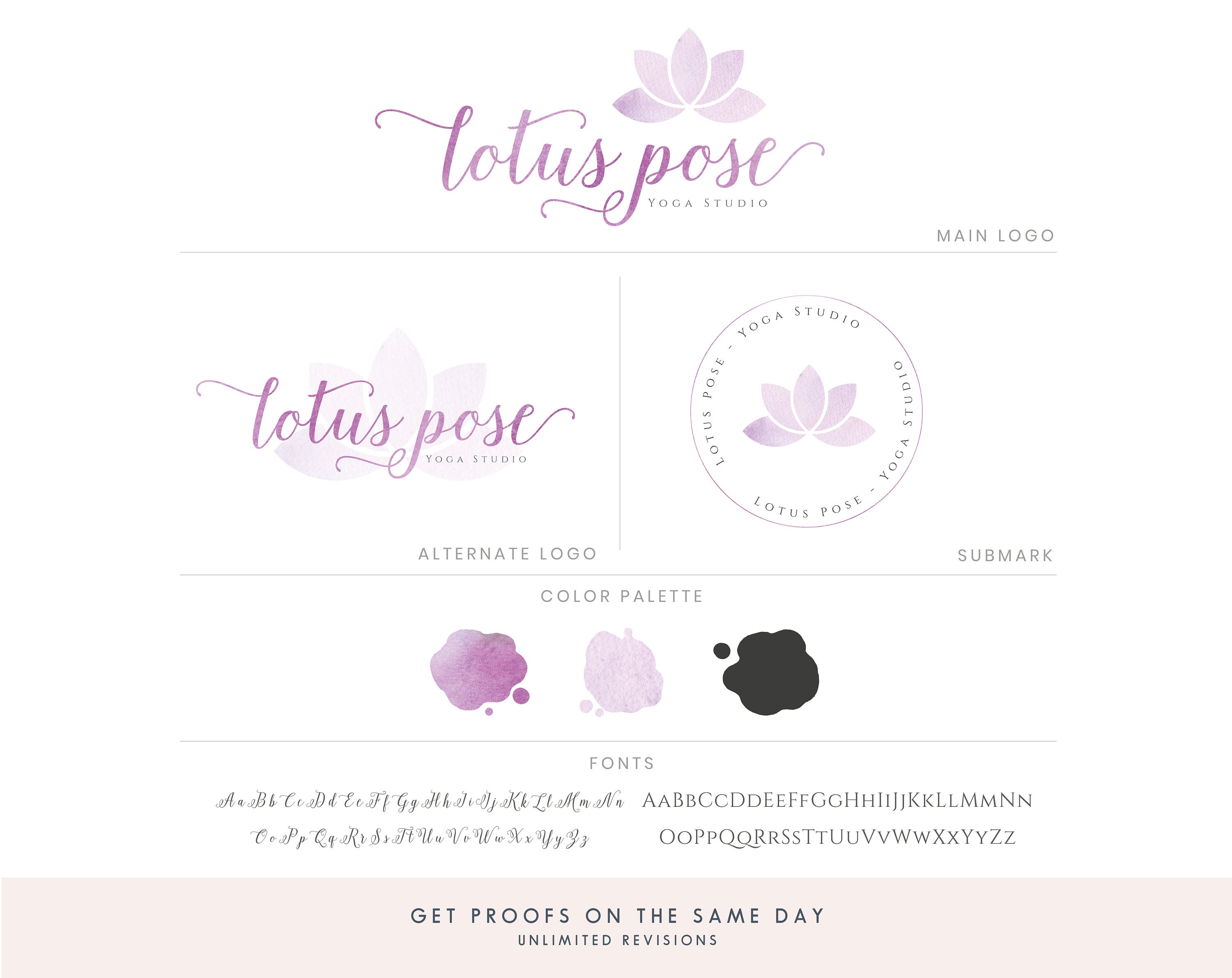 Lotus Logo Design Branding Package Yoga Logo Design Etsy